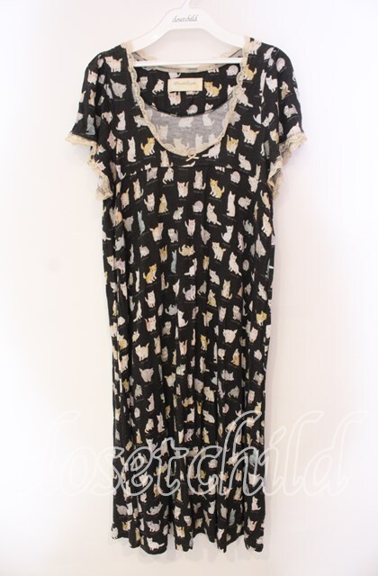 Franche Lippee / ねこ図鑑半袖ワンピース M クロ O-25-11-27-029-LO-OP-IG-OS [戻る]