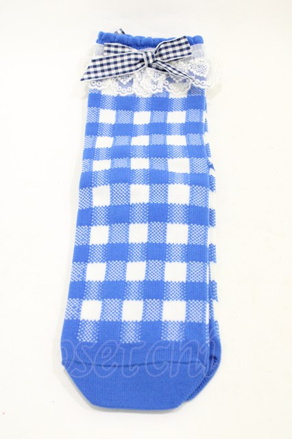 Angelic Pretty / Lovelyギンガムクルー丈ソックス ブルー H-25-12-04-1019-AP-ZA-NS-ZH
