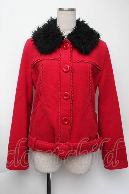 Emily Temple cute / ファー襟ショートコート 赤x黒 S-25-11-24-024-ET-CO-HR-ZS