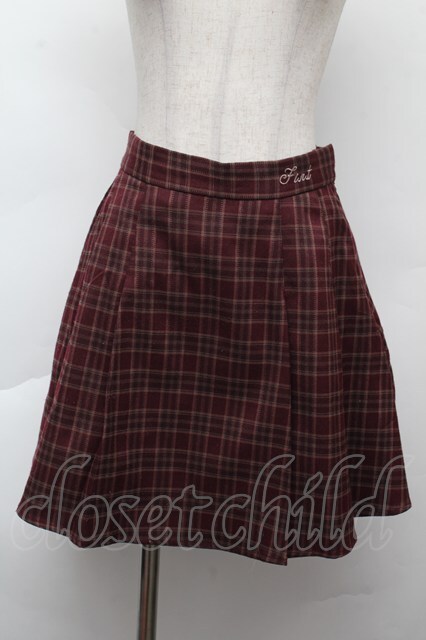 【SALE】F i.n.t / ロゴ刺繍入りサイドプリーツチェックミニスカート ワイン S-25-11-26-052-CA-SK-HR-ZT516