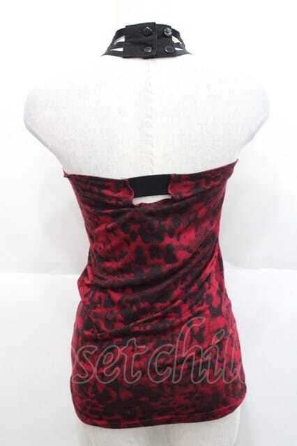 SEX POT ReVeNGe / レオパード柄クロスベアトップス 赤x黒 I-25-11-27-016-SP-TO-SA-ZI