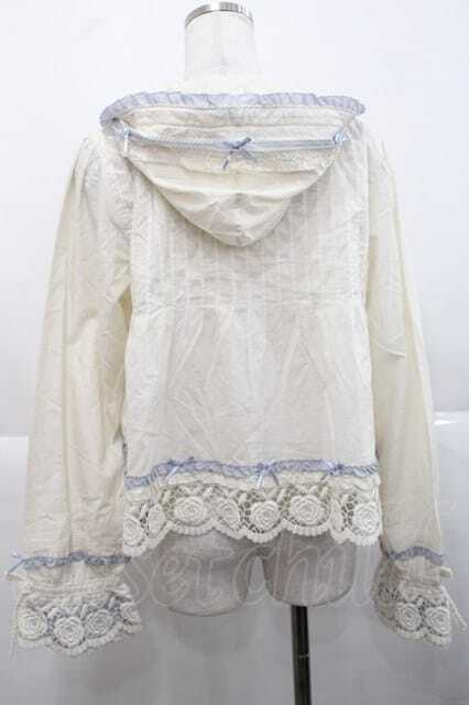 PINK HOUSE / 配色フリル使いフードブラウス アイボリーXブルー I-25-11-27-022-LO-BL-SA-ZI