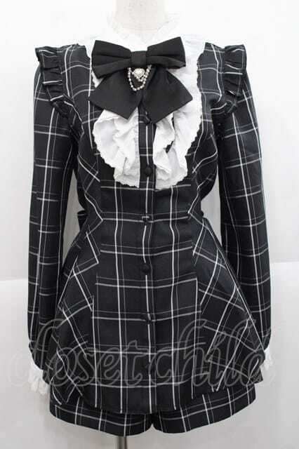 Secret Honey / チェックブラウス&ショートパンツセットアップ 黒チェックX白 I-25-11-27-040-CA-OP-SA-ZI