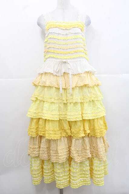 PINK HOUSE / 配色フリル使いキャミソールワンピース イエロー I-25-11-27-050-LO-CO-SA-ZI [戻る]