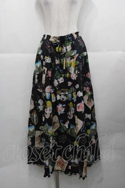 PINK HOUSE / ブーケモチーフプリントスカート 黒 I-25-11-27-069-LO-SK-SA-ZI