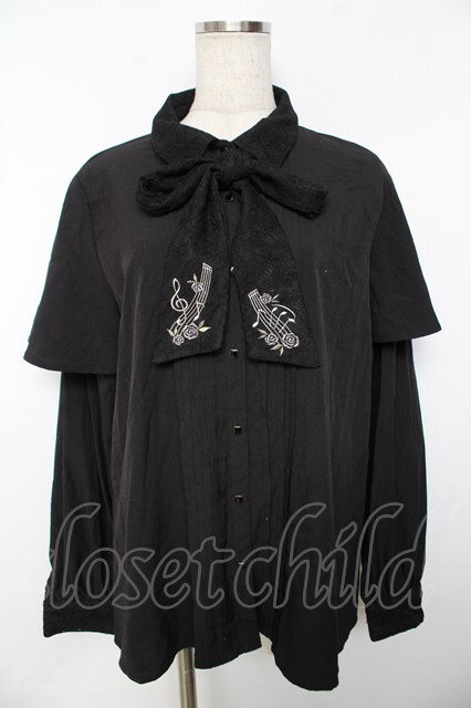axes femme / メロディ刺繍ケープ袖ブラウス L 黒 Y-25-11-30-065-AX-BL-SZ-ZY