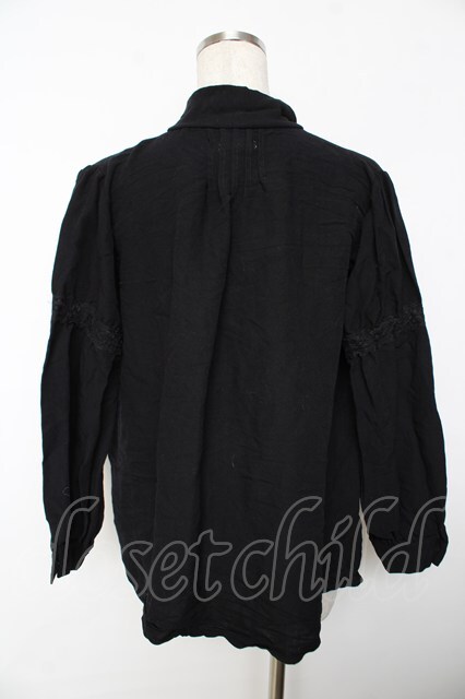 axes femme / 刺繍入りリボンロングブラウス M 黒 Y-25-11-30-066-AX-BL-SZ-ZI
