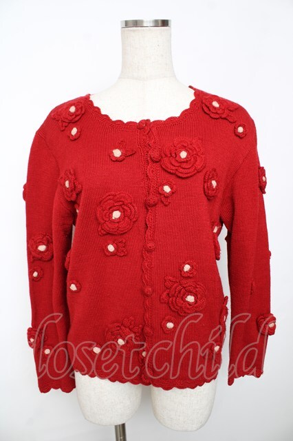 KETTY / カメリアモチーフニットカーディガン F 赤 Y-25-11-30-098-EL-TO-SZ-ZY