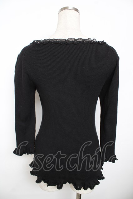 PINK HOUSE / お花モチーフリブトップス F 黒 Y-25-11-30-155-LO-TO-SZ-ZY
