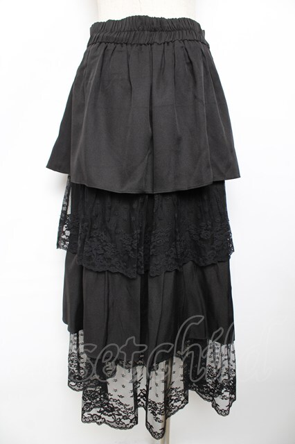 axes femme POETIQUE / レース使いティアードスカート M 黒 Y-25-11-30-218-AX-SK-SZ-ZI