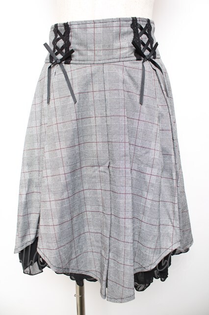 axes femme kawaii / 編み上げチェック柄ミディスカート M グレー Y-25-11-30-232-AX-SK-SZ-ZY