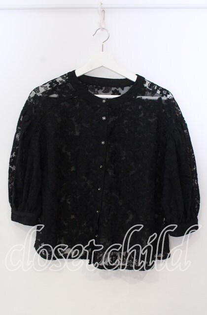 axes femme / 総レースボリューム袖ブラウス M クロ O-25-11-28-098-AX-BL-OW-OS