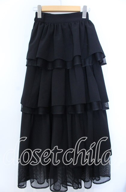 【SALE】HARE / シアーMIXティアードスカート ブラック O-25-11-28-006-PU-SK-IG-ZT453