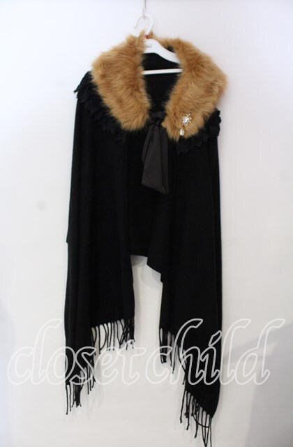 axes femme / ファーカラー付きストール クロ O-25-11-28-081-AX-ZA-OW-ZT1130R