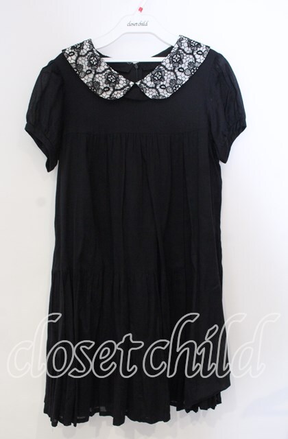 Jane Marple / レースカラーのコットンワンピース M クロ O-25-11-28-067-JM-OP-OW-ZT1130R