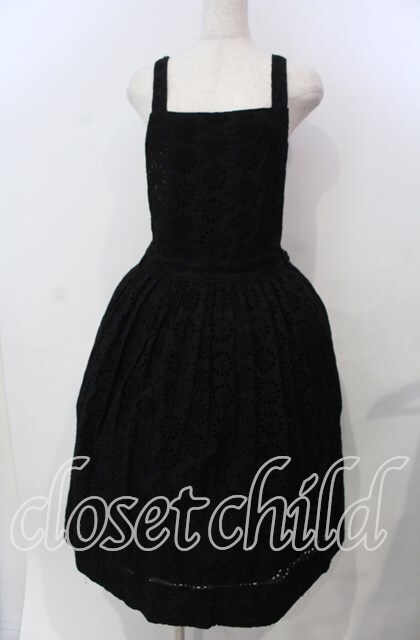 Jane Marple / アイレットレースのエプロンドレス M クロ O-25-11-28-052-JM-OP-OW-ZT1130U