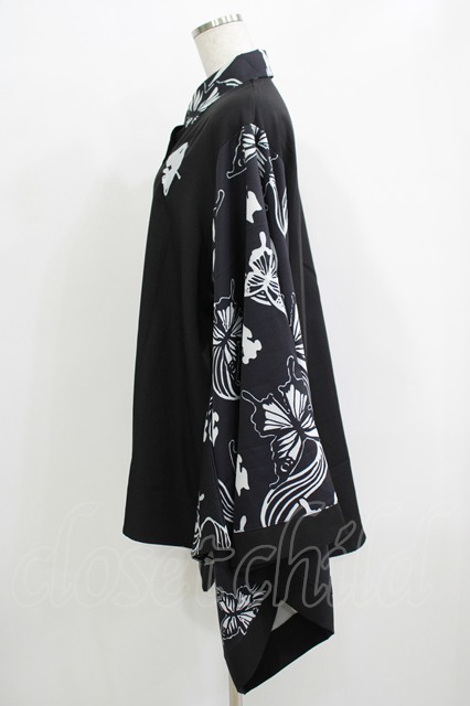 NieR Clothing / 着物風袖ブロッキングシャツ ブラック H-25-11-26-035-PU-BL-KB-ZH