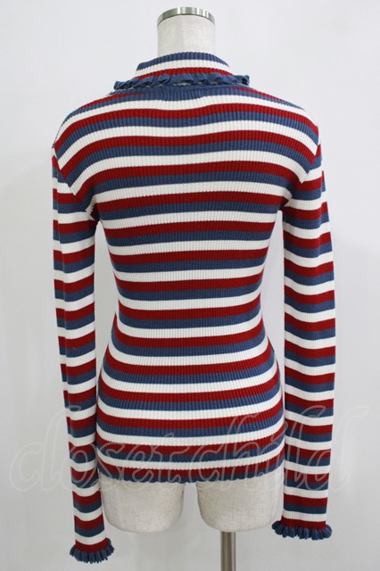 Shirley Temple / カラーボーダーニット 160 オフ×ブルー×ボルドー H-25-11-26-043-ET-TO-KB-ZH