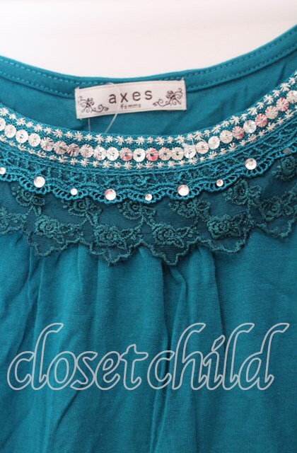 axes femme / スパンコール配色タンクトップ M ターコイズ O-25-11-29-030-AX-TO-IG-OS
