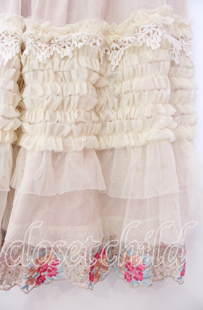 axes femme / 裾カラー刺繍チュールスカート M アイボリー O-25-11-29-034-AX-SK-IG-OS