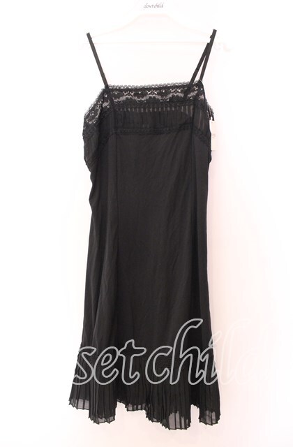 axes femme / プリーツシフォンインナーキャミワンピース M クロ O-25-11-29-045-AX-OP-IG-OS