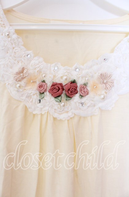 axes femme / フラワーモチーフ使いインナー アイボリー O-25-11-29-017-AX-TO-IG-OS
