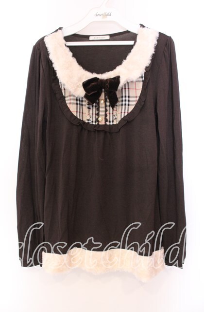 axes femme / ファー切り替えレイヤード風カットソー ブラウン O-25-11-29-076-AX-TO-IG-OS