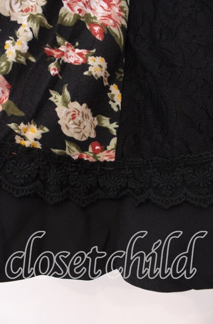axes femme / 花柄パッチワークスカート M クロ O-25-11-29-077-AX-SK-IG-OS