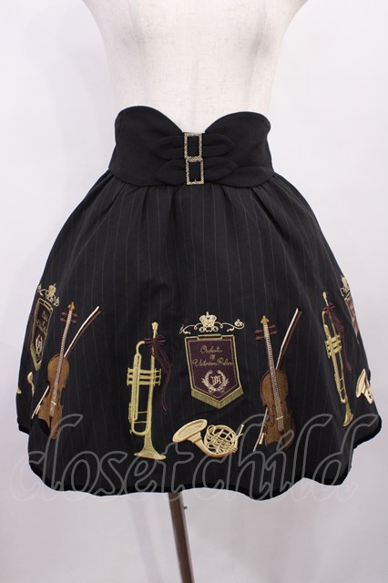 Amavel / 楽器刺繍入り サス付ベロア切替ミニ丈スカート Free ブラック H-25-12-06-1019-CA-SK-NS-ZH