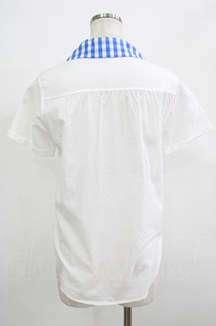 Jane Marple / ギンガムカラー半袖ブラウス M オフ×ブルー H-25-12-06-051-JM-BL-KB-ZH