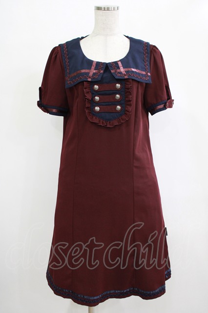 【SALE】Ozz oneste / ナポレオンセーラーワンピース ワイン×ネイビー H-25-12-06-019-OO-OP-KB-ZT176