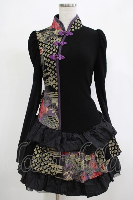 Qutie Frash / チャイナワンピース 黒×紫 H-25-12-06-025-QU-OP-KB-ZH