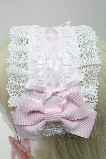 BABY,THE STARS SHINE BRIGHT / はしごレースのスピンドールヘッドドレス (綿サテン生地) ピンク S-25-11-28-014-BA-AC-AS-ZS
