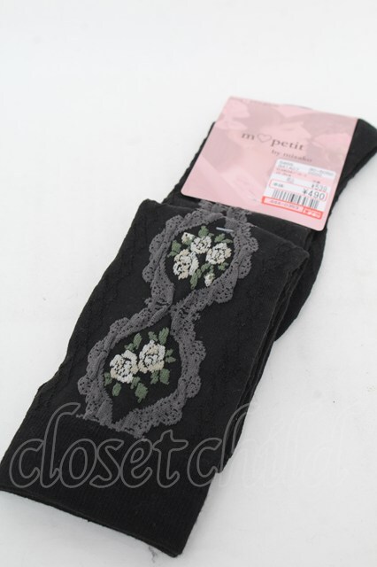 m petit by misako / ECAMOVKバラレースソックス 黒 S-25-11-28-1005-LO-ZA-AS-ZS