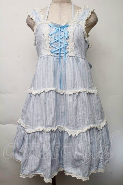 BABY,THE STARS SHINE BRIGHT / からみ3段ティアードジャンパースカート サックス S-25-11-28-1037-BA-OP-AS-ZS [戻る]