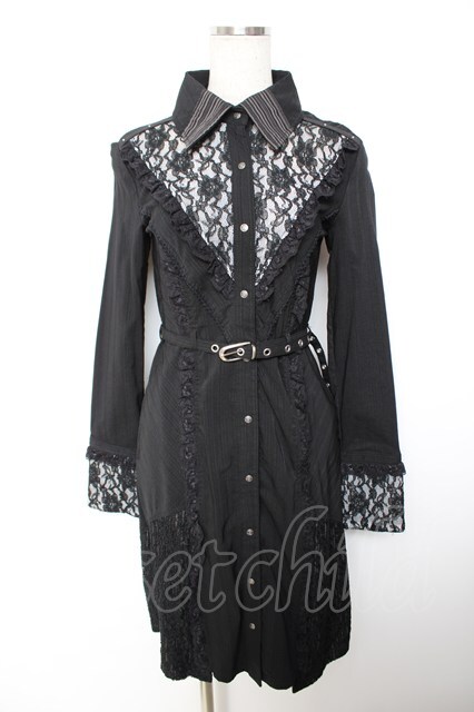 Ozz Croce / レースフリルシャツワンピース 黒 Y-25-12-01-025-OO-OP-SZ-ZY [戻る]