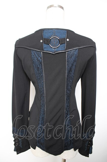 Ozz Croce / 蜘蛛の巣レース切替編み上げトップス 黒×青 Y-25-12-01-031-OO-TO-SZ-ZY [戻る]