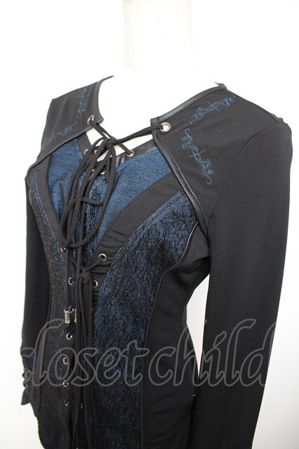Ozz Croce / 蜘蛛の巣レース切替編み上げトップス 黒×青 Y-25-12-01-031-OO-TO-SZ-ZY