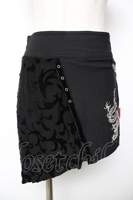 Ozz On / 龍刺繍アシメスカート 黒 Y-25-12-01-129-OO-SK-SZ-ZY