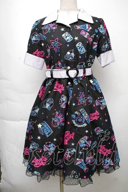 Angelic Pretty / Neon Star Dinerワンピース 黒 S-25-11-28-1054-AP-OP-AS-ZS