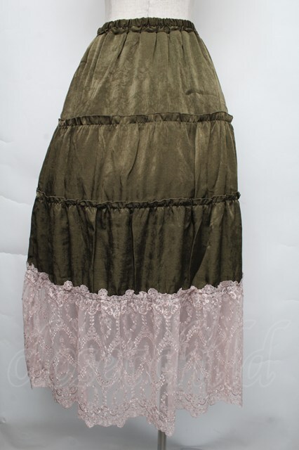 axes femme / 裾レースティアードスカート カーキ S-25-11-30-056-AX-OP-HR-ZS [戻る]