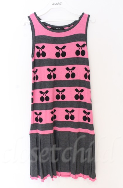 MILK / チェリーボーダーニットワンピース グレー×ピンク O-25-11-30-086-ML-OP-OW-OS