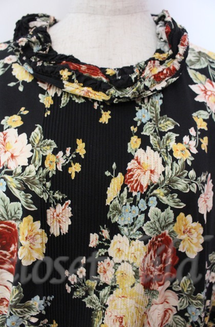 WONDERFUL WORLD / サッシュベルト付きブーケ柄ワンピース【お直しあり】 クロ O-25-11-30-006-LO-OP-IG-OS