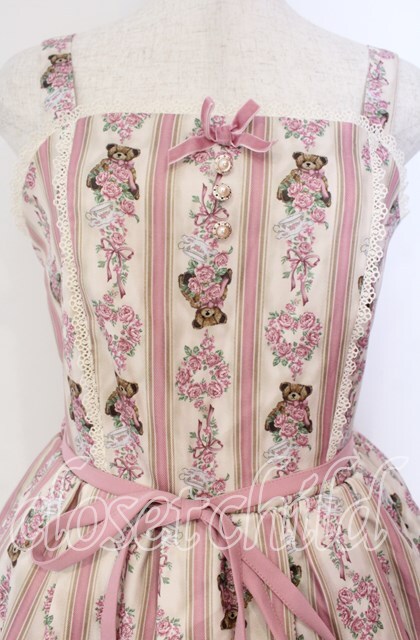 axes femme kawaii / RosyBear柄ジャンパースカート アイボリー O-25-12-02-042-AX-OP-IG-OS