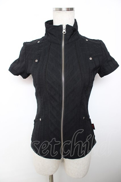 Ozz On / ZIPアップ半袖トップス 黒 Y-25-12-04-067-OO-TO-SZ-ZY [戻る]