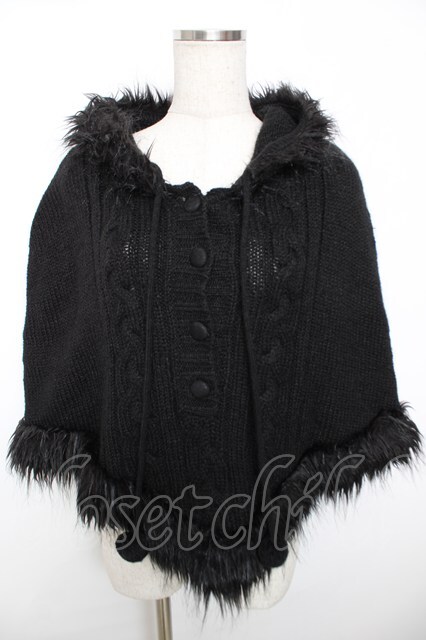 PEACE NOW / ファーフード付ニットポンチョ M 黒 Y-25-12-04-083-PU-JA-SZ-ZS