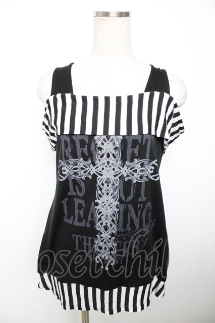 GHOST of HARLEM / オフショルボーダー切替トップス F 黒 Y-25-12-04-092-GL-TO-SZ-ZY
