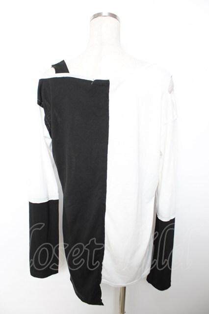 SEX POT ReVeNGe / 肩あき配色カットソー M 白×黒 Y-25-12-04-096-SP-TO-SZ-ZY [戻る]