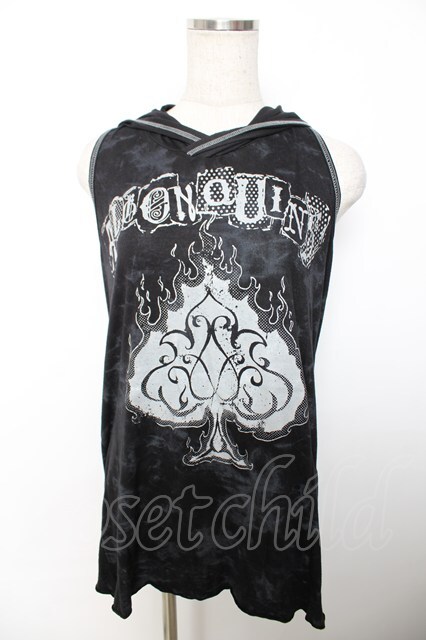 ALGONQUINS / プリント入りフードノースリーブトップス F 黒 Y-25-12-04-097-AL-TO-SZ-ZY