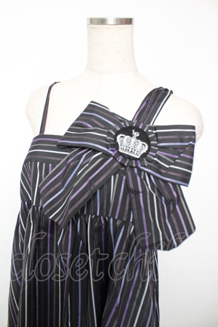 PUTUMAYO / ストライプジャンパースカート 黒×紫 Y-25-12-04-133-PT-OP-SZ-ZS